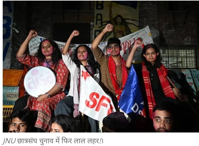जेएनयू में बिहार से आए छात्रों का एक बड़ा हिस्सा पढ़ता है। इसलिए जेएनयू में वामपंथ की जीत बिहार विधानसभा चुनाव के नतीजों का पूर्वाभास तो देती ही है। यदि नहीं, तो नीतीश को पुनः मुख्यमंत्री बनाने की घोषणा अमित शाह फिर क्यों करते? जेएनयू में वामपंथ की जीत से मोदी-शाह-संघ की तिकड़ी को वैसा ही झटका लगा है, जैसा ट्रंप को ममदानी के जीतने से। आखिरकार, भगवा विचारधारा को सींग से पकड़कर पटकनी देने की ताकत लाल में ही है। आज जेएनयू लाल सलाम के नारों से गुंजायमान है।