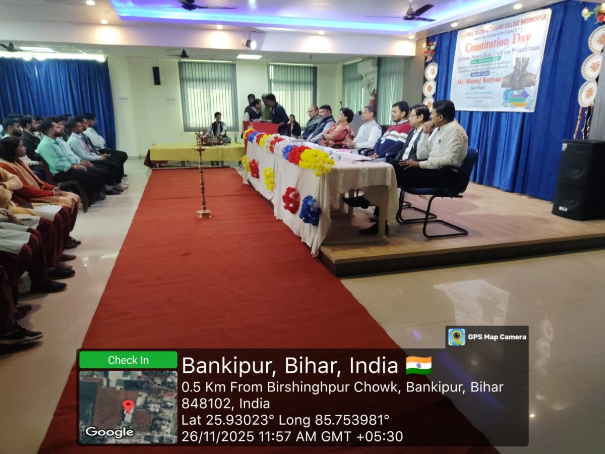वरिष्ठ अधिवक्ता समीर कुमार और आदर्श पासवान ने युवाओं से संविधान के आदर्शों को जीवन में अपनाने तथा जिम्मेदार नागरिक बनने का आह्वान किया। कार्यक्रम का सफल आयोजन कॉलेज की सह-पाठयक्रम समिति और जिला विधिक सेवा प्राधिकरण, समस्तीपुर के संयुक्त सहयोग से किया गया। मंच पर संविधान की प्रति और संसद भवन के प्रतीकात्मक चित्रों ने कार्यक्रम को और अधिक प्रेरणादायी बनाया। समारोह में कॉलेज के प्राध्यापकों, प्रशिक्षु शिक्षकों और विद्यार्थियों की सक्रिय सहभागिता रही। अंत में संस्थान की ओर से मुख्य अतिथि के प्रति आभार व्यक्त किया गया।