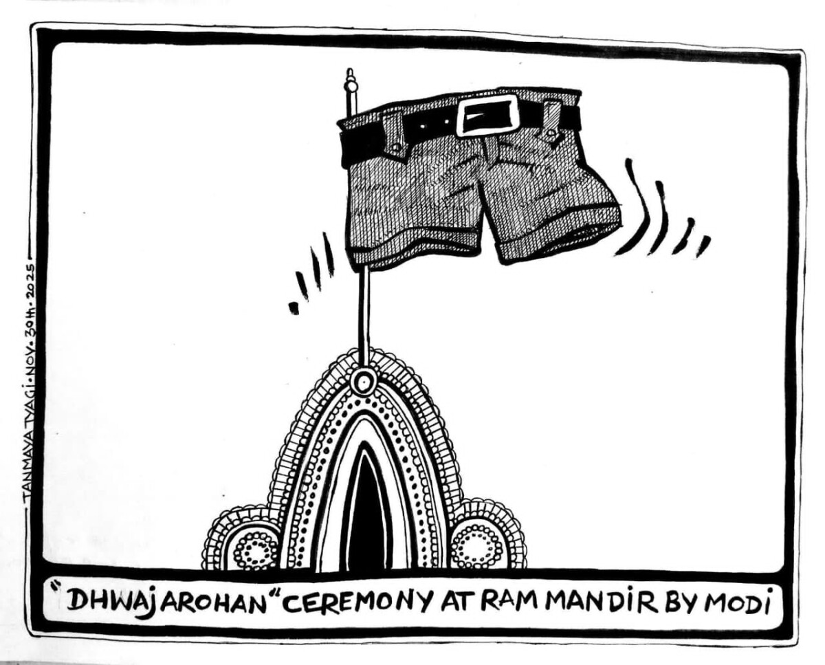 25 नवम्बर को अयोध्या में 22 महीने पहले ‘प्राण प्रतिष्ठित’ किये जा चुके मन्दिर पर पूरा कुनबा इत्ती चौड़ाई और उत्ती लम्बाई का भगवा ध्वज फहरा कर हिन्दू राष्ट्र के निर्माण की ओर कदमचाल तेज कर रहा था और *इधर* : उसी दिन, लगभग उसी समय मध्यप्रदेश की संस्कारधानी कहे जाने वाले जबलपुर में भगवा ध्वज हाथ में लिए कुछ ‘वीर और वीरांगनायें’ हिन्दू राष्ट्र के नाम पर लाठी तलवारें और न जाने क्या-क्या अस्त्र-शस्त्र लेकर एक धरने से लौट रहे लोगों को मार, पीट और घसीट रहे थे।