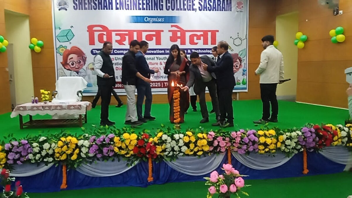 शेरशाह इंजीनियरिंग कॉलेज खडारी में शनिवार को विज्ञान मेला का भव्य आयोजन किया गया। मेले के अंतर्गत इन्नोवेशन इन साइंस एंड टेक्नोलॉजी विषय पर थीम आधारित प्रतियोगिता कराई गई। कार्यक्रम की मुख्य अतिथि रोहतास जिलाधिकारी उदिता सिंह दीप प्रज्वलित कर कार्यक्रम का आगाज की साथ में अनुमंडल पदाधिकारी सासाराम अशुतोष रंजन,ओएसडी आशीष रंजन,एसडीसी ओम प्रकाश,विनय प्रताप,विनीता कुमारी,जिला कला एवं संस्कृति पदाधिकारी पंकज कुमार, करहगर प्रखंड विकास पदाधिकारी अजीत कुमार व अंचलाधिकारी अजीत कुमार सिंह एवं कॉलेज के वरीय पदाधिकारी शामिल रहें।