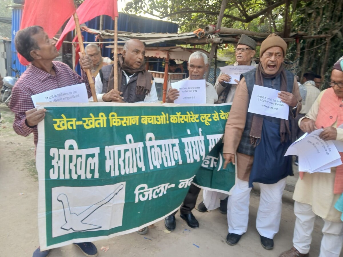 दुसरी ओर नीतिश के डबल इंजन की सरकार 125 यूनिट बिजली फ्री कर दिया है। परंतु 35 पैसे प्रति यूनिट चार्य बढा दिया है। और अभी बिजली बिधेयक लाकर कारपोरेट घराने को सोपने की तैयारी कर दिया है। संयुक्त किसान मोर्चा इसका बिरोध कर रहा है। जब तक इसे बापस नहीं लेती तब तक संयुक्त किसान मोर्चा चरणबद्ध आंदोलन जारी रहेगा टाउन थाना परिसर नवादा (धरना स्थल) से प्रर्दशन निकला जो गगनभेदी नारा लगाते हुए शहर भ्रमण कर शहीद भगत सिंह चौक पर सभा में तब्दील हो गया। रामयतन सिंह की अध्यक्षता में सभा हुई। सभा को किसान सभा के उपाध्यक्ष प्रोफेसर नरेश चंद्र शर्मा, अखिलेश प्र सिंह, ललन सिंह, राजकुमार यादव, राजेन्द्र बर्मा, मुखलेश प्रसाद, उमेश प्र, सहित सी पी आई एम के जिला मंत्री दानी विधार्थी ने संबोधित किया। बताओं ने जब तक बीज बिधेयक, एबं बिजली बिधेयक बापस, नहीं होता चरण बध्द आंदोलन जारी रखने का संकल्प लिया साथ ही जल्द से जल्द पैक्स ,ब्यापार मंडल द्दारा क्रय केंद्र खोलकर किसानों का धान सहित सभी अनाजों का खरीदने की ब्यबस्था , उचित मूल्य की गारंटी की जाय।