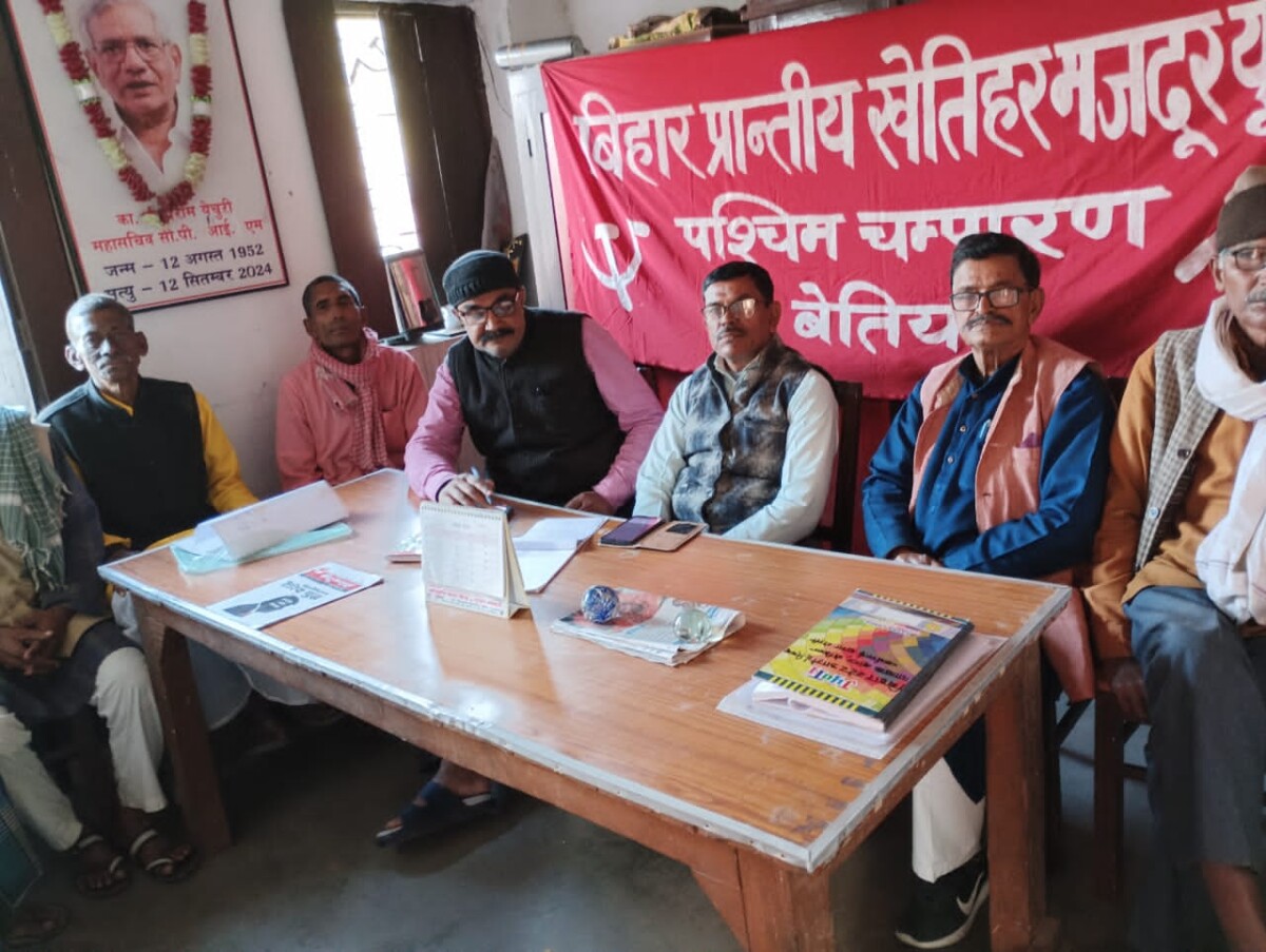 बिहार प्रांतीय खेतिहर मजदूर यूनियन पश्चिम चम्पारण जिला कमिटी की बैठक रिक्शा मजदूर सभा भवन में का.प्रकाश कुमार वर्मा की अध्यक्षता में हुई।