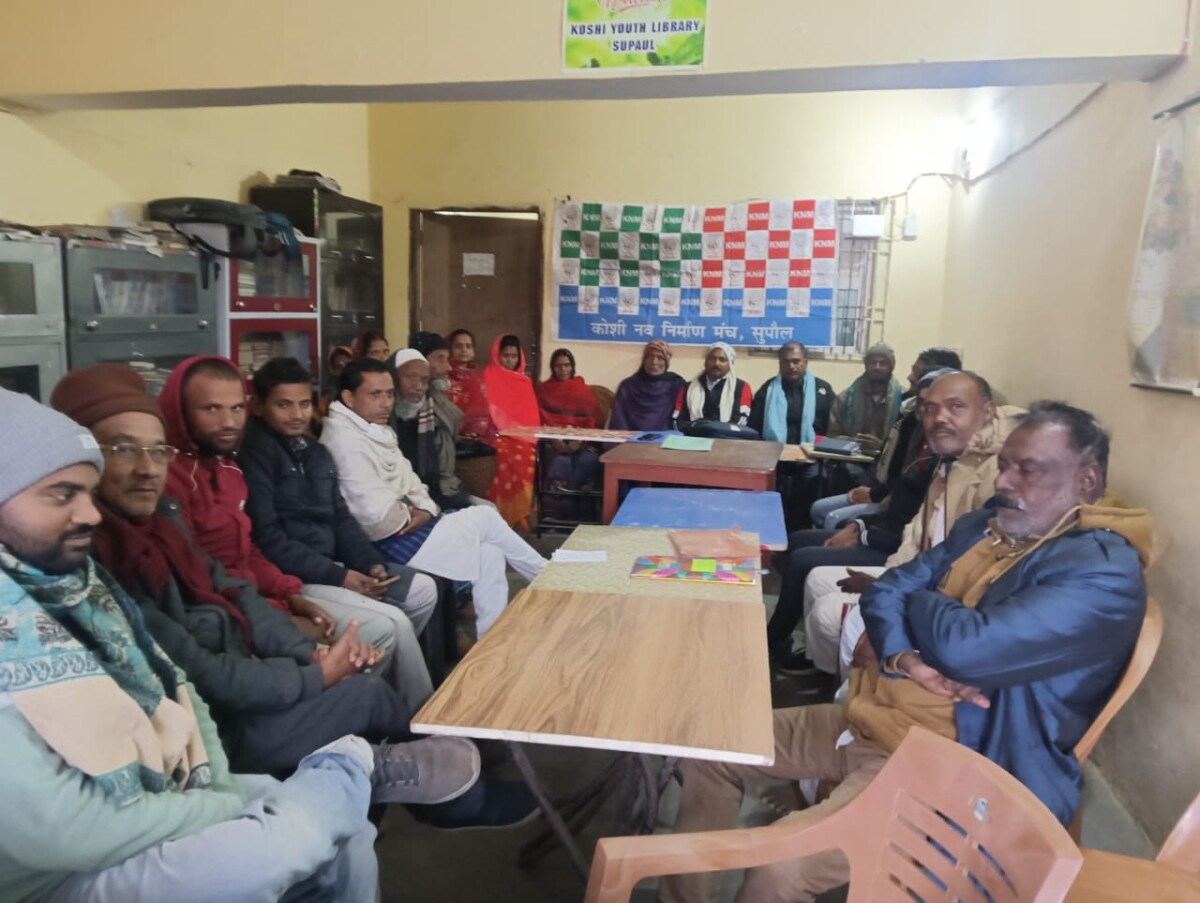 संगठन द्वारा कोशी के कटाव के बाद पुनर्वास के अभाव में तटबंध पर बसे लोगों को पुनर्वास या सरकारी जमीन में बसाने के मांग को दोहराया गया। संगठन द्वारा कोशी तटबंध के भीतर के लोगों का सर्वे करके पुनर्वासित कराने, कोशी पीड़ित विकास प्राधिकार को पुनः सक्रिय कराने, लगान मुक्ति, कोशी की छारण धाराओं को पुनर्जीवित कर पानी उसमें डायवर्ट करने के जैसे बुनियादी सवालों का आवेदन पुनः नव गठित सरकार के संबंधित मंत्रीगण और सचिव को देने की बात तय की। बैठक में बैरिया मंच से मरौना के बीच कोशी पर पुल निर्माण के प्रयास का स्वागत किया करते हुए कहा गया कि उन निर्मित होने वाले पुल की डिजाइन में तटबंध के भीतर के लोगों को चढ़ने उतरने के लिए प्रयाप्त स्थानों पर एप्रोच व्यस्था भी हो। सुपौल नगर क्षेत्र के पुनर्वास में बसे कोशी के वास्तविक लोगों से होल्डिंग टैक्स की माफी की मांग उठाने का मांग पत्र देने को तय किया गया। संगठन द्वारा गांवों में बिना कचरा उठाए लोगों से पैसा लेने की बात का विरोध किया गया। मनरेगा को खत्म करके वी.भी. जी राम जी करने पर आश्चर्य व्यक्त करते हुए कहा गया कि नया कानून बिहार जैसे गरीब राज्य में मजदूर और राज्य के बुनियादी विकास दोनों के हित में नहीं है। इसपर केंद्र सरकार विचार करे। कोशी के सवालों पर नए साल में नए जोश के साथ संगठित करने के संकल्प के साथ बैठक सम्पन्न हुई।