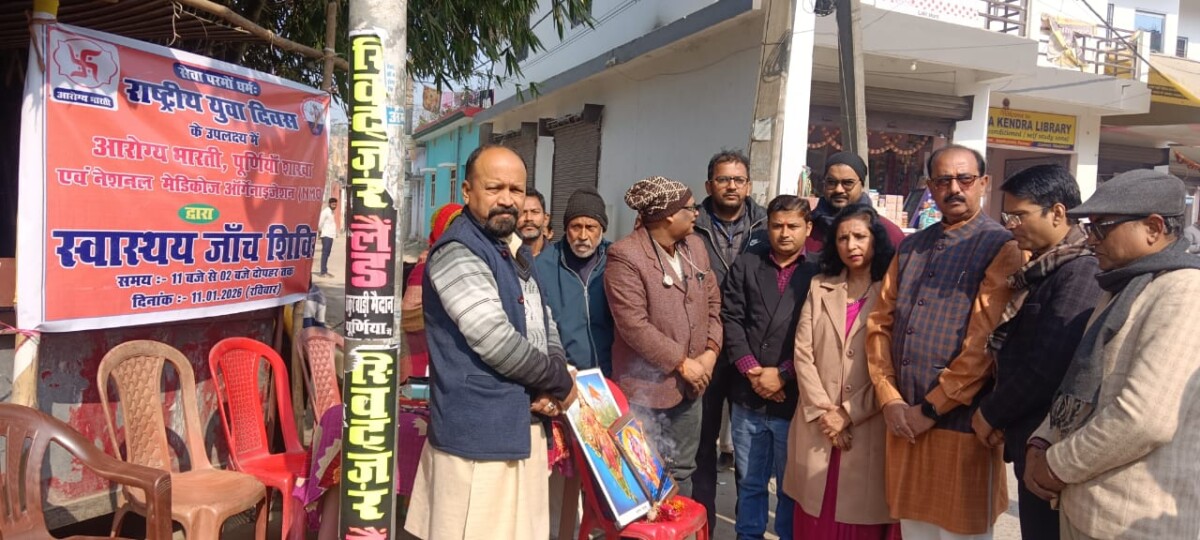 स्वामी विवेकानंद जयंती के अवसर पर आरोग्य भारती उत्तर बिहार, नेशनल मेडिकोज ऑर्गेनाइजेशन (एनएमओ) बिहार एवं सेवा भारती के संयुक्त तत्वावधान में पूर्णिया सदर क्षेत्र की 10 सेवा बस्तियों में नि:शुल्क स्वास्थ्य परीक्षण शिविर का व्यापक आयोजन किया गया। इस सेवा अभियान का नेतृत्व आरोग्य भारती उत्तर बिहार के प्रान्तीय उपाध्यक्ष डॉ. संजीव कुमार ने किया।