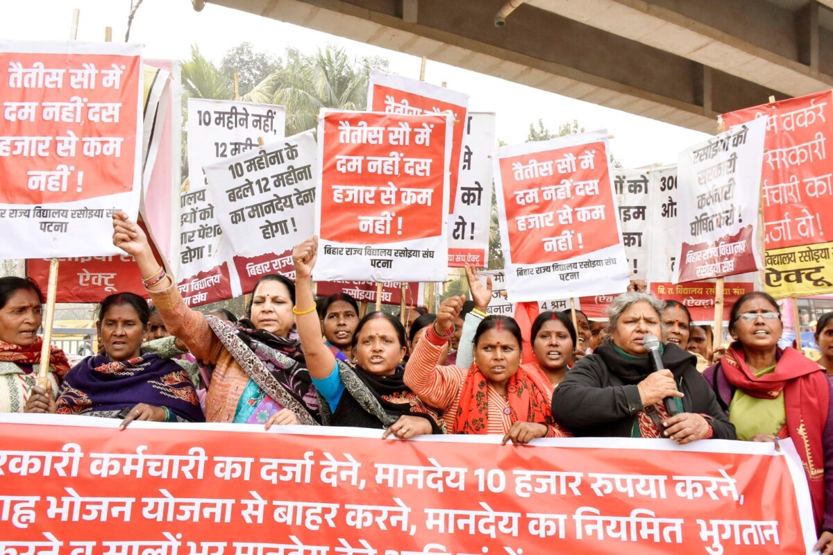 रसोइया अपनी मांगों को लेकर प्रदर्शन किया। प्रदर्शन का नेतृत्व संघ की महासचिव सरोज चौबे, ऐक्टू के राष्ट्रीय सचिव रणविजय कुमार, भाकपा- माले के पूर्व विधायक गोपाल रविदास, भाकपा- माले नेता कमलेश कुमार,संघ की सचिव सोना देवी, सह सचिव रिंकू देवी, ऐपवा नेत्री अनुराधा सिंह, राखी मेहता, दमयन्ती सिंहा, रसोइया नेत्री रीता देवी, सुनीता देवी, गुड़िया देवी, जुलेखा खातून, , लीलावती देवी आदि ने किया। जुलूस जीपीओ गोलंबर से निकाला गया और एमडीएम कार्यक्रम के सामने एक सभा की गई । सभा को संबोधित करते हुए बिहार राज्य विद्यालय रसोइया संघ महासचिव सरोज चौबे ने कहा कि सरकार मध्याह्न भोजन योजना का एनजीओ करण कर रही है जिससे बच्चों को घटिया खाने की आपूर्ति की जा रही है। इसीलिए एनजीओ को एमडीएम से तत्काल बाहर करना होगा।साथ ही रसोइयों को सरकारी कर्मचारी घोषित करना होगा। मानदेय तत्काल दस हजार करना होगा चार श्रम कोड कानून को रद्द करना होगा।