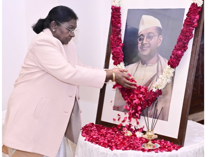 राष्ट्रपति श्रीमती द्रौपदी मुर्मू ने नेता जी के चित्र पर पुष्पांजलि अर्पित कर भावभीनी श्रद्धांजलि दी।