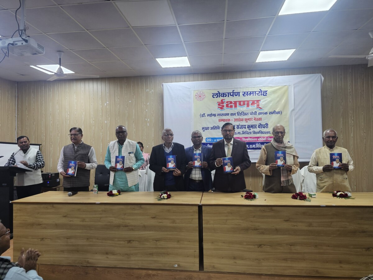 दरभंगा: अच्छी पुस्तकों के प्रकाशन का समाज पर काफी गहरा प्रभाव पड़ता है। प्रो अशोक कुमार मेहता प्रशासनिक पदों पर रहते हुए भी निरंतर अपने लेखन कार्य से दूसरों के लिए प्रेरक बने हुए हैं। उक्त बातें ललित नारायण मिथिला विश्वविद्यालय, दरभंगा के कुलपति प्रोफेसर संजय कुमार चौधरी ने डॉ महेन्द्र नारायण राम लिखित ग्रन्थों पर आधारित प्रो मेहता द्वारा सम्पादित समीक्षा ग्रन्थ ‘इक्षणम्’ का विश्वविद्यालय भौतिकी विभाग में मुख्य अतिथि के रूप में लोकार्पण करते हुए कही। कुलपति ने प्रो मेहता को पुस्तक सम्पादन हेतु बधाई एवं शुभकामना देते हुए कहा कि सम्पादक/लेखक इसी तरह अच्छी-अच्छी पुस्तकों का लेखन करें, ताकि समाज पर सकारात्मक प्रभाव डाला जा सके।