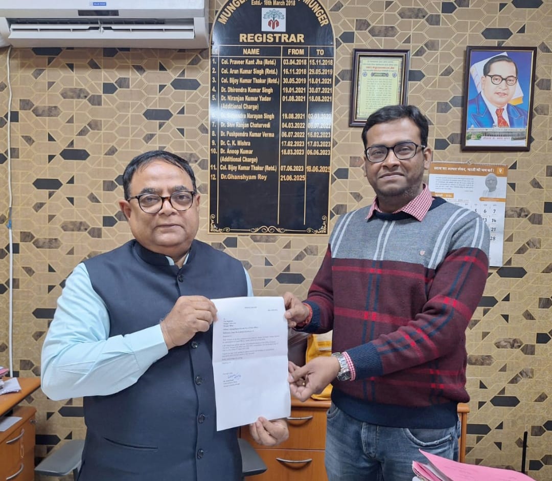 भागलपुर।मुंगेर: मुंगेर विश्वविद्यालय के पीआरओ डाॅ सूरज कोनार को कुलपति माननीय प्रोफेसर (डॉ.) संजय कुमार के आदेश से फिर से मुंगेर विश्वविद्यालय का नोडल ऑफिसर के दायित्व ग्रहण करने का अधिसूचना बुधवार को जारी किया गया था । डाॅ कोनार ने कुलसचिव डॉ घनश्याम रॉय के समक्ष शुक्रवार को अपना योगदान समर्पित किया। कुलसचिव ने कहा कि आपके पुराने अनुभव के आधार पर माननीय कुलपति प्रोफेसर संजय कुमार ने पुनः जिम्मेदारी सौंपी है। भविष्य में अपनी जिम्मेदारियों को शिद्दत से निर्वहन करें।