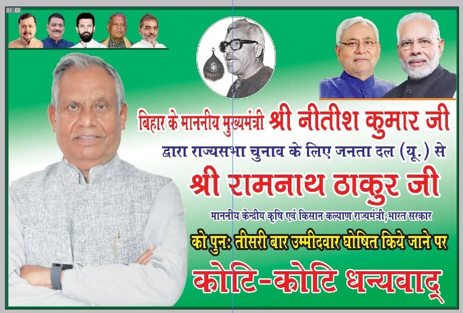 समस्तीपुर। माननीय केंद्रीय कृषि एवं किसान कल्याण राज्य मंत्री श्री रामनाथ ठाकुर को पुनः राज्यसभा का उम्मीदवार घोषित किए जाने पर समस्तीपुर सहित मिथिलांचल में खुशी की लहर है। इस अवसर पर बिहार सरकार के कैबिनेट मंत्री व वरिष्ठ जदयू नेता महेश्वर हजारी ने उन्हें हार्दिक बधाई एवं कोटि-कोटि शुभकामनाएं दी हैं।