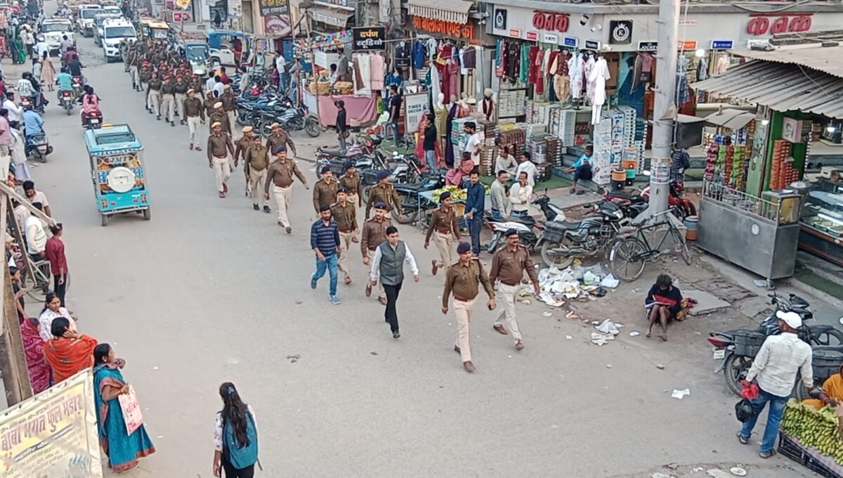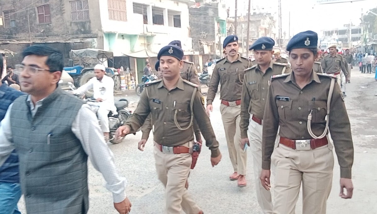 जयनगर पुलिस ने निकाली फ्लैग मार्च