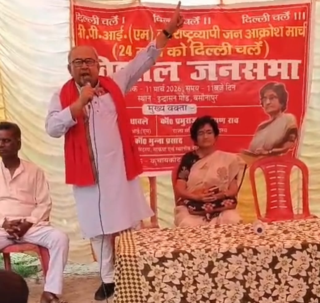 जे टी न्यूज़, गोपालगंज: भारत की कम्युनिस्ट पार्टी (मार्क्सवादी) द्वारा 24 मार्च को आहूत दिल्ली जन आक्रोश महारैली में भारी संख्या में बिहार के किसान,मजदूरों को शामिल करने के लिए पूरे बिहार में जन आक्रोश जत्था निकला है।गोपालगंज के इंद्रासन मोड़ पर, पंचदेवरी ,कल्याणपुर में सभा को संबोधित करते हुए सी पी आई (एम) पोलिट ब्यूरो सदस्य का. मरियम ढवले ने बताया कि आज देश गंभीर संकट से गुजर रहा है। एक तरफ किसानो की जमीनों को छीनने के लिए नए-नए किसान विरोधी कानून बनाए जा रहे हैं। ट्रेड यूनियन मजदूरों के जनतांत्रिक और मौलिक अधिकारों को चार श्रम संहिता बनाकर छीना जा रहा है। उन्हें 12 घंटे काम करने के लिए मजबूर किया जा रहा है। काफी संघर्ष के बाद मिला मनरेगा कानून जिसके माध्यम से खेत मजदूरों को रोजगार मिलता है। उसे समाप्त कर देने की योजना मोदी सरकार बना चुकी है। अमेरिका के साथ जो ट्रेड डील मोदी सरकार ने किया है। वह देश के किसानों का कमर तोड़ने का समझौता है। पार्टी के बिहार राज्य सचिव मंडल सदस्य प्रभुराज नारायण राव ने कहा कि अमेरिका और इजरायल की दादागिरी ने ईरान और बेनेजुएला की संप्रभुता को समाप्त कर रहा है।हमारी पार्टी अमेरिका और इजरायल के अमानवीय कारवाई पर अविलंब रोक लगाने के लिए मोदी सरकार पर दबाव बनाने के लिए हजारों की संख्या में दिल्ली चलने का आह्वान करती है। सभा को राज्य सचिव मंडल सदस्य शशिकांत राय, मुना प्रसाद ,जिला सचिव सच्चिदानंद ठाकुर ,रमेश कुमार बंधु ,सुनैना देवी,परमेंद्र कुमार,मोहन डेविड आदि ने संबोधित किया।