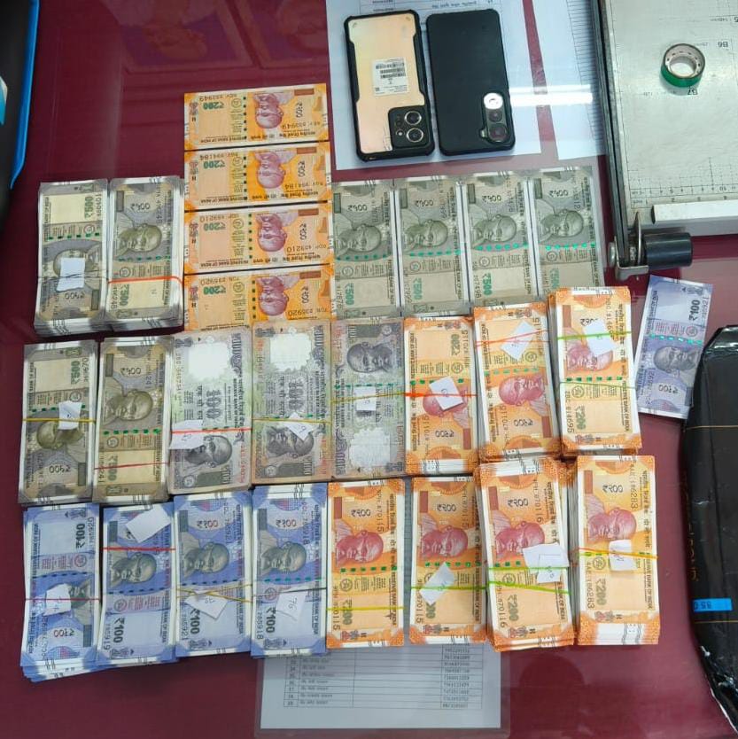 पुलिस ने गिरफ्तार अभियुक्तों के पास से पाँच सौ रुपया का जाली भारतीय करेंसी नोट 433 नोट,पाँच सौ रुपया का ऑरिजनल भारतीय करेंसी नोट (नमुना) 56 नोट, दो सौ रुपया का जाली भारतीय करेंसी नोट 1847 नोट, दो सौ रुपया का जाली भारतीय करेंसी नोट (नमुना) 04 नोट,एक सौ रुपया के जाली भारतीय करेंसी नोट 295 नोट,एक सौ रुपया का जाली भारतीय करेंसी नोट (नमुना) 04 नोट,कलर प्रिंटर मशीन 01, नोट कटर (पेपर काटनेवाला) मशीन 02,नोट कटर (पेपर काटनेवाला) मशीन 01, ट्रांसपैरेंट टेप 01,. टेप 01, रबर 100 पीस,स्केल – 02, कैची 01, स्टेपलर, रेजर ब्लेड 01 एवं कुल नकली राशी 6,44,000/- रू० बरामद की है.