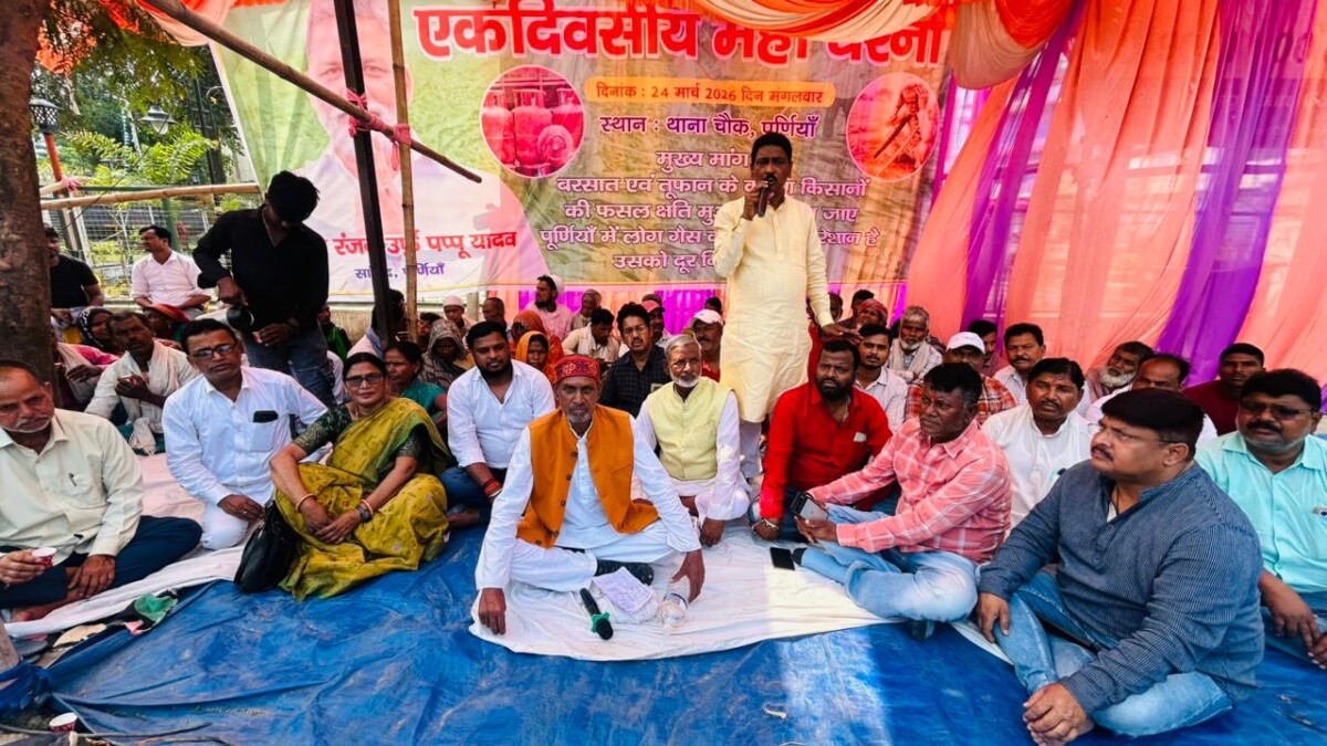 बारिश से हुई भारी फसल क्षति को लेकर पप्पू यादव के आह्वान पर किसानों का एकदिवसीय धरना