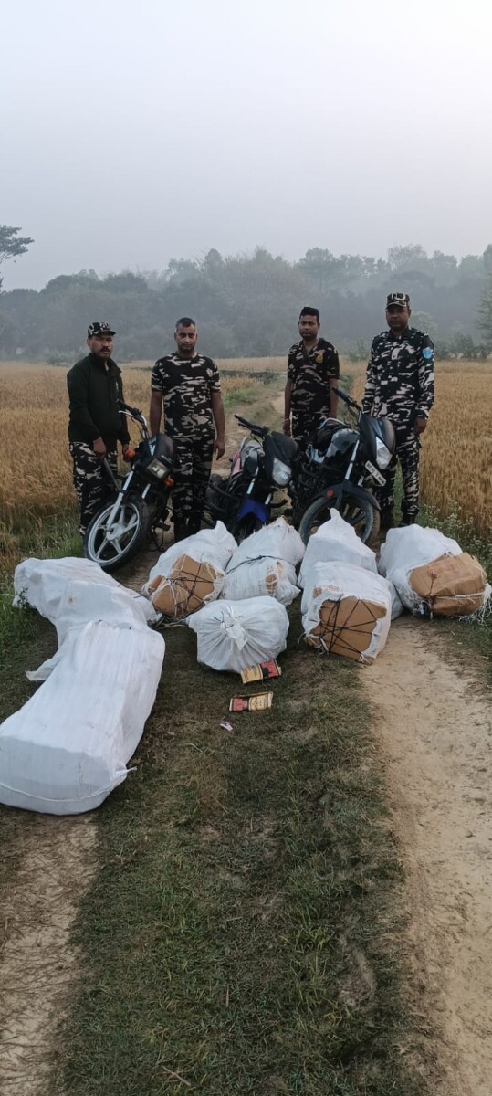 जे टी न्यूज़, सुपौल (शिव शंकर प्रसाद) : सशस्त्र सीमा बल 45 वीं वाहिनी बीरपुर के अंतर्गत सीमा चौकी कटैया एवं नियोर द्वारा भारत-नेपाल अंतरराष्ट्रीय सीमा पर सतर्कता एवं प्रभावी कार्रवाई करते हुए कुल 494.4 लीटर नेपाली शराब के साथ 03 मोटरसाइकिल जब्त की गई। इस संबंध में 45 वीं वाहिनी बीरपुर कमांडेंट गौरव सिंह ने बताया कि विश्वसनीय सूत्रों से सूचना प्राप्त हुई थी कि सीमा क्षेत्र में तस्करी की संभावना है। प्राप्त सूचना के आधार पर सीमा चौकी कटैया एवं बिहार पुलिस के साथ संयुक्त रूप से एक विशेष नाका पार्टी का गठन कर सीमा स्तम्भ संख्या 207/9 के समीप घात लगाकर निगरानी की गई। कुछ समय पश्चात संदिग्ध गतिविधि दिखाई देने पर पार्टी द्वारा पीछा किया गया, परंतु तस्कर अंधेरे का लाभ उठाकर भाग निकले।