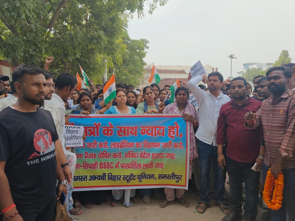 जे टी न्यूज़, समस्तीपुर : बीपीएससी टीआरई-4 की वैकेंसी नही आने से लाखों शिक्षक अभ्यर्थियों मे नाराजगी है। राजधानी पटना में पिछले 11 वर्षों से लाखों छात्रों के हित में आंदोलन करने वाले बिहार स्टूडेंट यूनियन के अध्यक्ष छात्र नेता दिलीप कुमार के आह्वान पर समस्तीपुर के पटेल मैदान में मैदान में शनिवार को हजारों की संख्या में अभ्यर्थियों का जुटान हुआ। छात्र नेता दिलीप कुमार के नेतृत्व में हजारों अभ्यर्थी नारेबाजी करते हुए सड़क पर प्रदर्शन करते हुए पटेल मैदान पहुंचे। महिला अभ्यर्थियों की भागीदारी भी बड़ी संख्या में देखी गई। छात्र नेता दिलीप कुमार ने कहा कि टीआरई-4 के दस लाख से अधिक अभ्यर्थी दो वर्षों से वैकेंसी का इंतजार कर रहे हैं। बीपीएससी के कैलेंडर के अनुसार 24 अगस्त 2024 को ही टीआरई-4 की परीक्षा होनी थी लेकिन अभी तक विज्ञापन भी नही आया।