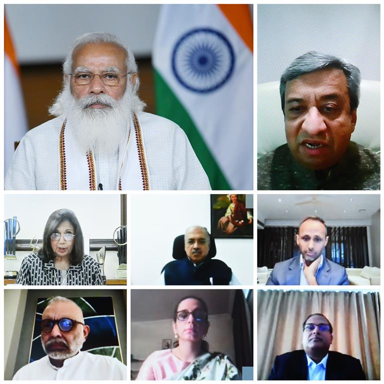 प्रधानमंत्री श्री नरेन्द्र मोदी ने 19 अप्रैल, 2021 को नई दिल्ली में वीडियो कांफ्रेंसिंग के माध्यम से फार्मा उद्योग के प्रतिनिधियों के साथ बातचीत की