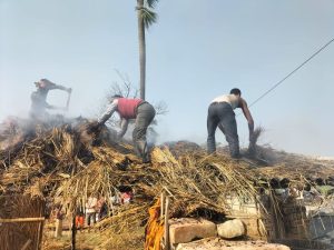 विभूतिपुर : थाना क्षेत्र के वाजिदपुर बंम्वैया पंचायत के वार्ड 16 दाहु चौक के समीप मंगलवार के दोपहर करीब 1बजे स्वर्गीय शोभित राय के पुत्र सिकंदर राय और देवेंद्र राय के घर में शार्ट सर्किट से अचानक आग लग गई । जिससे घर में रखा कुछ समान व घर के उपर रखा पुआल जल गया । बताया जाता है कि दोनों भाई के घर में कोई नहीं था । इस बीच शार्ट सर्किट से घर में अचानक आग लग गई । जिससे स्थानीय लोगों में अफरा-तफरी का माहौल बन गया । वहीं स्थानीय लोगों की मदद से किसी तरह आग पर काबू पाया गया । इस संबंध में पूछे जाने पर प्रभारी सीओ सह आरओ मधुसूदन चौरसिया ने आग लगने की पुष्टि करते हुए कहा कि पुआल जला है ।