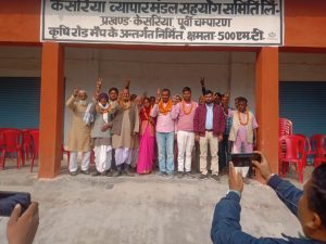 केसरिया: केसरिया व्यापार मंडल सहयोग समिति के नये कार्यकारी अध्यक्ष सुधांशु रंजन मनोनीत किये गये हैं।उनका मनोनयन सोमवार को व्यापार मंडल के प्रबंधन समिति की बैठक के दौरान किया गया।प्रखण्ड सहकारिता पदाधिकारी अमरेश कुमार की मौजूदगी में प्रबंधन समिति की बैठक आहूत की गई।जहां रामानन्द राय,राकेश कुमार,लीला देवी,दीना प्रसाद सहित सात सदस्यों की उपस्थिति में बीसीओ ने श्री रंजन को कार्यकारी अध्यक्ष मनोनीत किया।मौके पर प्रह्लाद मिश्रा,गुंजन सिंह,हरि सिंह, राजदेव सहनी,टुन्ना सिंह समेत अन्य मौजूद थे।