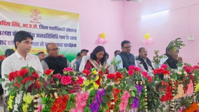 जिला पदाधिकारी योगेंद्र सिंह के द्वारा माल्यार्पण किया गया