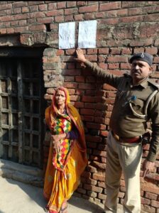 फरार चल रहे आरोपी के घर पुलिस ने चिपकाया इश्तेहार