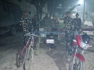 एसएसबी जवानों ने एक मोटरसाइकल और दो साईकल साथ एक तस्कर को किया गिरफ्तार