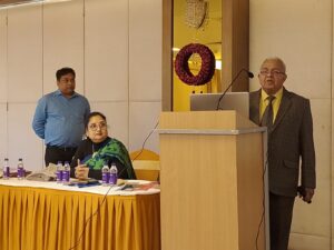 मुख्य वक्ता के रूप में सी एम कॉलेज के अवकाश प्राप्त अंग्रेजी- प्राध्यापक डा अमरेन्द्र शर्मा ने पीपीटी स्लाइड के माध्यम से “फॉक्स” पुस्तक के प्रत्येक चैप्टर का विस्तृत परिचय देते हुए बताया कि इस पुस्तक में पांच मॉडल्स हैं। जिसमें कम्युनिकेशन के सिद्धांत, भर्वल एवं नॉनभर्वल कम्युनिकेशन, वार्तालाप के विभिन्न पहलू, कंप्रीहेंशन तथा इंटरपेटेशन, लेखनकला को विकसित करने के विभिन्न कदमों के साथ ही अनुवाद, सारांश लेखन, नोट मेकिंग, रिपोर्ट राइटिंग, जॉब एप्लीकेशन साहित्य के विभिन्न आयाम तथा प्रस्ताव लेखन आदि को विस्तार से बताया गया है। यह पुस्तक स्नातक सहित सभी छात्र- छात्राओं एवं शिक्षकों के लिए काफी उपयोगी सिद्ध होगी।