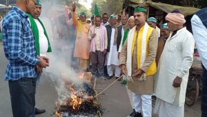 पराली जलाने को लेकर एफ आइ आर के विरुद्ध किसान महासंघ ने किया पुतला दहन
