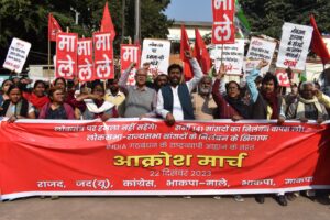 मोदी सरकार देश की डेमोक्रेसी को मोदीक्रेसी में बदल देने का सपना देख रही है. आगे कहा कि राज्यसभा अध्यक्ष की एक सांसद द्वारा की गई मिमिक्री पर भाजपा राजनीति कर रही है और कह रही है कि इसके जरिए जाट समुदाय का अपमान किया गया है. लेकिन दूसरी ओर उसी जाट समुदाय से आने वाली महिला पहलवान साक्षी मलिक ने भाजपाइयों की बलात्कारी प्रवृत्ति से तंग आकर कुश्ती से सन्यास ले लिया. क्या यह जाट समुदाय और महिलाओं का अपमान नहीं है? पूरा देश भाजपा की लोकतंत्र और महिला विरोधी कार्रवाइयों को देख व समझ रहा है. इंडिया गठबंधन के नेताओं ने कहा कि यह तानाशाही चलने वाली नहीं है. 2024 के लोकसभा चुनाव में इस तानाशाह सरकार को दिल्ली की गद्दी से उखाड़ फेंका जाएगा. विपक्ष मुक्त संसद और विरोध मुक्त सड़क के मंसूबे पालने वाली भाजपा को देश की जनता कभी कामयाब नहीं होने देगी. हमारी मांग है कि सभी निलंबित सांसदों का निलंबन अविलंब वापस लिया जाए. टीएमसी सांसद महुआ मोइत्रा को भी इसी प्रकार से संसद से बाहर कर दिया गया. भाजपा विरोधी सभी पार्टियां आज एकजुट हो रही हैं और देश को बचाने के लिए एक साथ चलने के लिए कृतसंकल्पित हैं. पटना सहित राज्य के सभी जिला मुख्यालयों पर भी आज इंडिया गठबंधन के बैनर तले विरोध-प्रदर्शन किया गया.