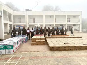 जे टी न्यूज़, जयनगर (संटू नायक): एसएसबी 48वी वाहिनी सशस्त्र सीमा बल जयनगर के कार्यक्षेत्र भारत-नेपाल सीमा चौकी कमला के जिम्मेवारी के इलाके में सशस्त्र सीमा बल के जवानों को एक बड़ी कामयाबी मिली है। गुप्त सूचना के आधार पर त्वरित कार्यवाही करते हुये निरीक्षक मुकेश खतोंबरीया,समवाय प्रभारी कमला 48वीं वाहिनी की अगुवाई में विशेष नाका दल द्वारा की गयी कार्यवाही मे भारतीय-नेपाल सीमा स्तम्भ संख्या 270/15 से लगभग 3.1 किलोमीटर की दूरी पर भारतीय क्षेत्र में 2 तस्करों को अवैध रूप से तीन गाड़ियों में नेपाल से भारत लाय जा रहे अवैध सामान के साथ गिरफ्तार किया गया है।