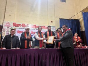 जे टी न्यूज, मधेपुरा:विश्व हिंदी दिवस की अवसर पर बिहार के विशिष्ट साहित्यकारों को हिंदी रत्न सम्मान से सम्मानित किया गया। यह सम्मान बिहार हिंदी साहित्य सम्मेलन के अध्यक्ष अनिल सुलभ एवं पटना उच्च न्यायालय के न्यायाधीश संजय कुमार के द्वारा प्रदान किया गया।