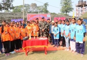 कुआरी, +2 प्रोजेक्ट बालिका उच्च विद्यालय, पहुंसी, +2 राजकीयकृत उच्च विद्यालय कुर्साकांटा की छात्राओं ने भाग लिया। जिसमें 04 टीमें सेमी फ़ाइनल में पहुंची। उसके उपरांत कुल 02 टीमों के बीच फाइनल मैच का रोमांचक मुकाबला खेला गया। जिसमें +2 राजकीयृत उच्च विद्यालय, कुआरी, की “ए”टीम ने विजेता की ट्रॉफी अपने नाम कर ली । टूर्नामेंट के दौरान आनंद प्रकाश यादव, उप कमांडेंट ने सभी छात्राओं को “बेटी बचाओ बेटी पढ़ाओ” थीम की विस्तृत जानकारी दी और सभी छात्राओं के उज्वल भविष्य की कामना की। स्थानीय लोगों द्वारा इस टूर्नामेंट की काफी सराहना की गई और बताया गया की सशस्त्र सीमा बल द्वारा लगातर सीमावर्ती इलाकों में इस तरह के नागरिक कल्याण कार्यक्रम/कौशल विकास प्रशिक्षण कार्यक्रम आयोजित किए जाते हैं जिसमे खेल कुद प्रतियोगिता, मानव चिकित्सा शिविर,पशु चिकित्सा शिविर व अन्य प्रकार के कौशल विकास प्रशिक्षण के कार्यक्रम शामिल है। इस कार्यक्रम में
