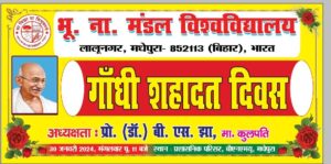 बीएनएमयू, मधेपुरा में गाँधी शहादत दिवस के अवसर पर 30 जनवरी, 2024 (मंगलवार) को पूर्वाह्न 11 : 00 बजे श्रद्धांजलि सभा का आयोजन किया जाएगा।