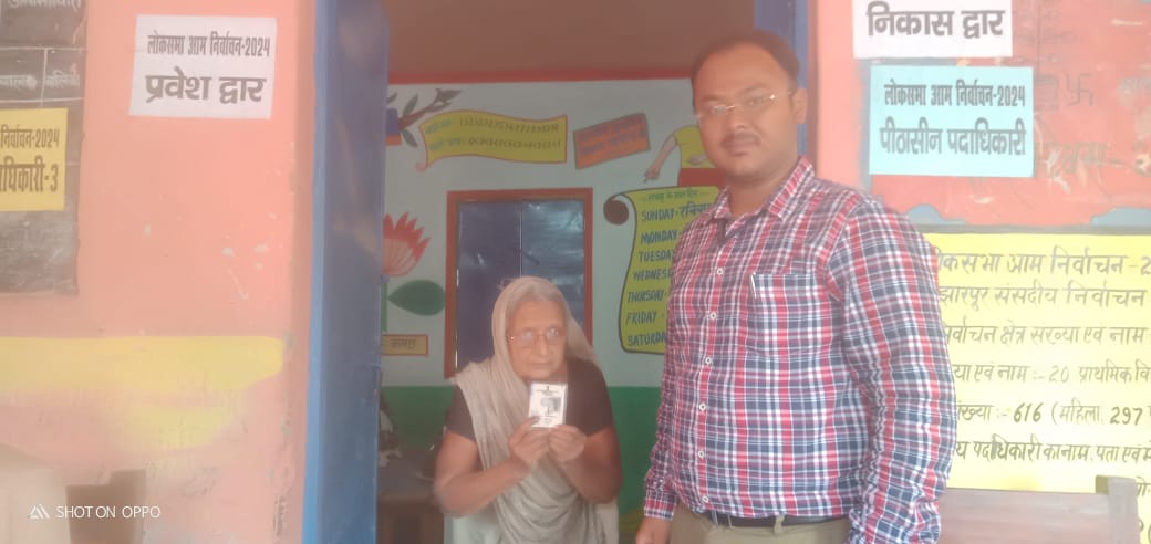 लदनियां प्रखंड के महथा गांव की मंजू देवी (83) मंगलवार को घर से आधा किलोमीटर की दूरी पर स्थित प्राथमिक विद्यालय की बूथ संख्या 20 पर पोते आशीष चंद्र झा के सहारे लोकसभा चुनाव में मतदान करने पहुंची। बूथ से संबंधित पीठासीन पदाधिकारी ने प्राथमिकता के आधार पर वोट करवाया। मंजू देवी ने अपना अनुभव साझा करते हुए कहा कि वोटकर प्रसन्नता हो रही है। इस अवस्था में मिले वोट करने के मिले मौके को वे ईश्वर की कृपा बताती हैं।