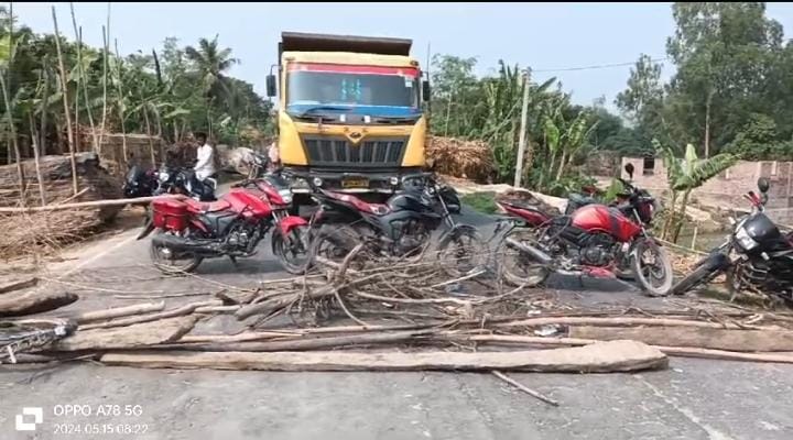 हाइवा ट्रक से साइकिल सवार मछली व्यवसाय की कुचलने से हुई मौत आक्रोशित ग्रामीणों ने सड़क जामकर किया प्रदर्शन