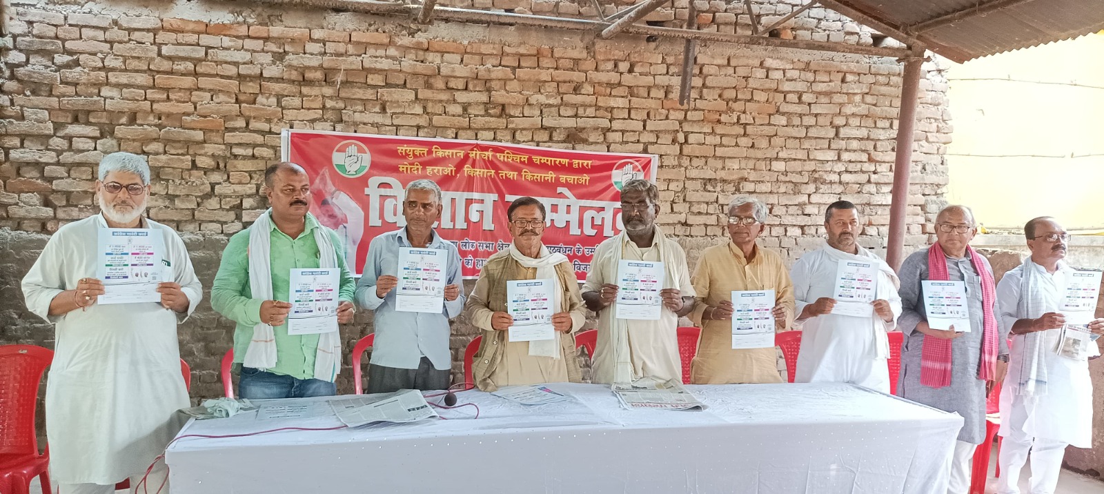 जो उनकी सरकार को चुनौती दे रहा है। जिससे भयभीत होकर उन्होंने तीनों काले कानून को वापस ले लिया था। लेकिन प्रधानमंत्री नरेंद्र मोदी ने एमएसपी को कानूनी दर्जा देने ,किसानों को फसल में लागत का डेढ़ गुना दाम देने, कर्ज से दबे हुए किसानों को कर्ज से मुक्ति दिलाने ,स्वामीनाथन कमीशन के अनुसाशाओं को लागू करने, 750 शहीद किसानों के आश्रितों को मुआवजा देने, लखीमपुर खीरी में पांच किसानों को गाड़ी से रौंद कर हत्या करने वाले केंद्रीय गृह राज्य मंत्री अजय मिश्रा टेनी पर हत्या का मुकदमा चलाकर जेल देने आदि मांगों को पूरा करने का जो आश्वासन दिया था और आंदोलन को समाप्त कराया था। एक बार फिर वह झूठा साबित हुआ और किसानों के साथ धोखा हुआ। आज देश में हो रहे लोकसभा चुनाव किसानों को फैसला करने का मौका देता है कि देश के किसान विरोधी, मजदूर विरोधी ,नौजवान विरोधी संविधान विरोधी लोकतंत्र विरोधी, गरीब विरोधी ,भारतीय जनता पार्टी के नेतृत्व में चलने वाली नरेंद्र मोदी की सरकार को उखाड़ फेंका जाए। इस चुनाव में अपने मत के बल पर भाजपा को हराया जाए। नरेंद्र मोदी की सरकार को देश से भगाया जाए ।तभी देश के किसानों तथा खेती और किसानी की रक्षा हो सके।तभी देश का संविधान और लोकतंत्र बच पाएगा ।इसलिए आज संयुक्त किसान मोर्चा पश्चिम चंपारण का जिला किसान सम्मेलन यह आह्वान करता है कि पश्चिम चंपारण संसदीय निर्वाचन क्षेत्र से इंडिया गठबंधन समर्थित कांग्रेस पार्टी के उम्मीदवार मदन मोहन तिवारी को हाथ छाप पर बटन दबाकर भारी बहुमत से विजई बनाया जाए।