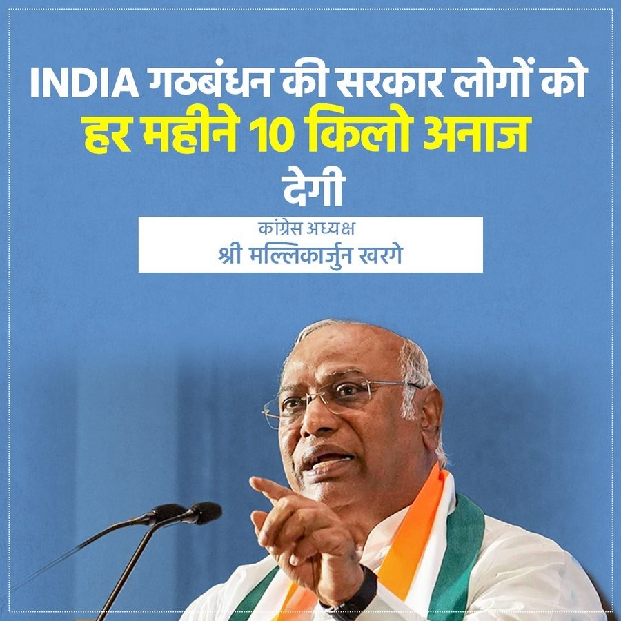 जे टी न्यूज़, बड़ी घोषणा : इंडिया गठबंधन की सरकार लोगों को हर महीने 10 किलो अनाज देगी।