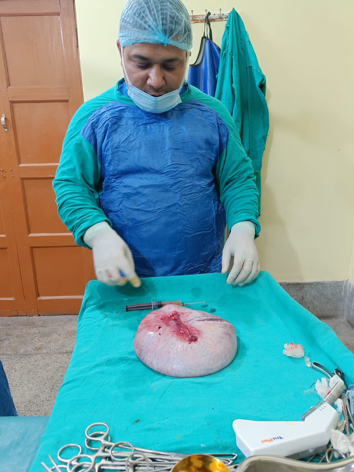 जे टी न्यूज़, छपरा : छपरा में लड़की के पेट से ऑपरेशन कर डॉक्टर ने ट्यूमर को निकाला है। लड़की पेट में करीब पांच लीटर पानी जमा हो गया था। जिससे उसके जान को भी खतरा था। लेकिन छपरा शहर के भगवन बजार थाना रोड स्थिति द सर्जन हॉस्पिटल में युवती का सफल ऑपरेशन कर एक किलो का ट्यूमर को निकाला गया और उसकी जान बचायी गयी। सारण जिला के जनता बाजार थाना क्षेत्र के राम कुमार प्रसाद की 20 वर्षीय पुत्री पुजा कुमारी (काल्पनिक) के पेट में दर्द के शिकायत होने पर द सर्जन हॉस्पिटल में भर्ती कराया गया। जहाँ डॉ अमित रंजन के जांच उपरांत पता चला की उसके पेट में बड़ा-सा मांस बढ़ गया है। जिसके बाद द सर्जन हॉस्पिटल के संस्थापक एवं लैपेरोस्कोपिक एवं कैंसर सर्जन डॉ अमित रंजन ने सर्जरी कराने की सलाह दी। उसके बाद परिजन तैयार हुए और एक मेडिकल टीम बनाकर करीब घंटो के प्रयास के बाद युवती के सफल ऑपरेशन कर एक किलो का पेट से ट्यूमर निकाला गया।.