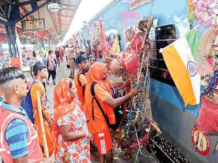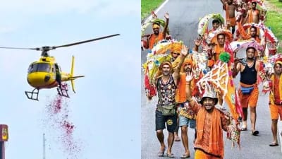 बात यहीं तक नहीं रुकती ; क्षणिक महत्त्व की इस मरीचिका और भुलावे को रास्ते भर दिखाया और दोहराया जाता है। पिछली बार तो उत्तर प्रदेश का डीजीपी खुद हेलीकॉप्टर में सवार होकर आकाश से फूल बरसाने के लिए गया था। अब इसे और ज्यादा विकेन्द्रीकृत कर दिया गया है। पुलिस को साफ साफ़ निर्देश हैं कि चाहें जो होता रहे, वे अपनी आंखे मूँद कर रखेंगे ; बजाय क़ानून व्यवस्था से निबटने के, नियम-कायदों पर चलने के लिए वह भोले कांवड़ियों को समझाएगी ; सिर्फ समझाएगी नहीं, उनकी “जरूरतों” का ख्याल रखेगी ; उनकी सराहना ही नहीं, सेवा सुश्रुषा भी करेगी। इस तरह अभयदान देकर उन्हें – भले चंद दिनों के लिए – क़ानून विधान से ऊपर होने का सुख दे दिया जाता है।