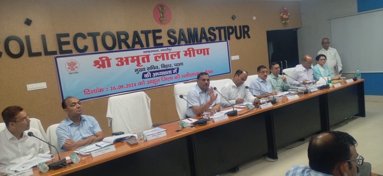 जे टी न्यूज, समस्तीपुर: मुख्य सचिव श्री अमृत लाल मीणा की अध्यक्षता में समाहरणालय स्थित सभागार में जिला स्तरीय बैठक का आयोजन किया गया। इस दौरान दौरान मुख्य सचिव ने जिले में चल रही विभिन्न योजनाओं की विभागवार समीक्षा की एवं अधिकारियों को कई दिशा निर्देश दिए।