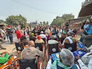 आज दिनांक 13-1-25 को बिस्फी प्रखंड के गांव औसी में स्वयं सेवी संस्था आसरा के द्वारा बुजुर्ग, वरिष्ठ नागरिकों एवं विकलांग लोगों का शिविर लगाया गया, जिसमें बड़ी संख्या में लोगों की उपस्थिति रही, बिस्फी प्रखंड के पूर्व प्रमुख एवं वर्तमान पंचायत समिति सदस्य शीला देवी ने वरिष्ठ नागरिक एवं विकलांग आसरा संस्था का फीता काटकर उद्घाटन किया और अपने हाथों से वरिष्ठ नागरिक और विकलांग लोगों को व्हिल चेयर,बेंत, घुटने का बेल्ट, क़मर का बेल्ट,कान से सुनने का मशीन कुल 130 गरीब बुजुर्ग वरिष्ठ नागरिक एवं विकलांग लोगों के बीच पूर्व प्रमुख शीला देवी ने वितरण किया गया।