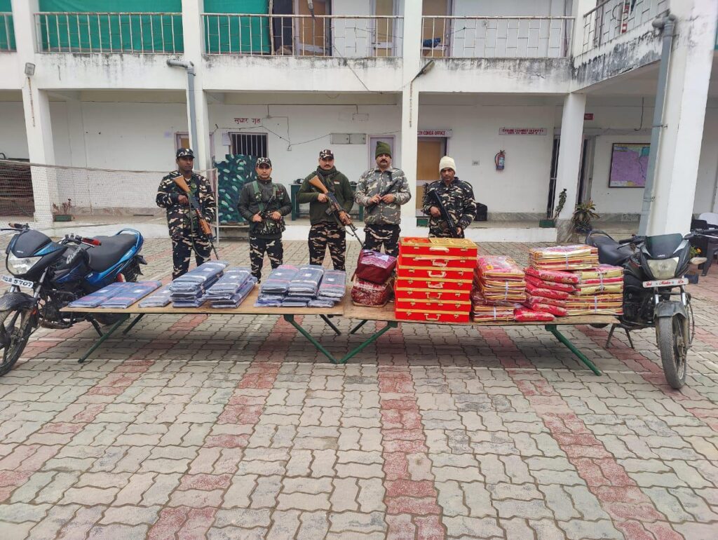 जयनगर 48वी वाहिनी, सशस्त्र सीमा बल, जयनगर के कार्यक्षेत्र सीमा चौकी बेतौनाह के जिम्मेवारी के इलाके मे एसएसबी के जवानों को एक बड़ी कामयाबी मिली है । जवानों द्वारा गस्ती के दौरान 269/08 से 50 मीटर दूर भारतीय क्षेत्र में दो लोग मोटरसाईकिल पर बोरो में सामान ले जाते दिखाई दिये उनकी नजर एसएसबी के जवानों पर पड़ते ही सामान गिराकर बार्डर नजदीक होने का फायदा उठाकर नेपाल भाग गए । पकड़े गए माल को खोलकर जांच की गयी तो उसमें कपड़े थे । पकड़े गए इस सामान का विवरण इस प्रकार से है :-