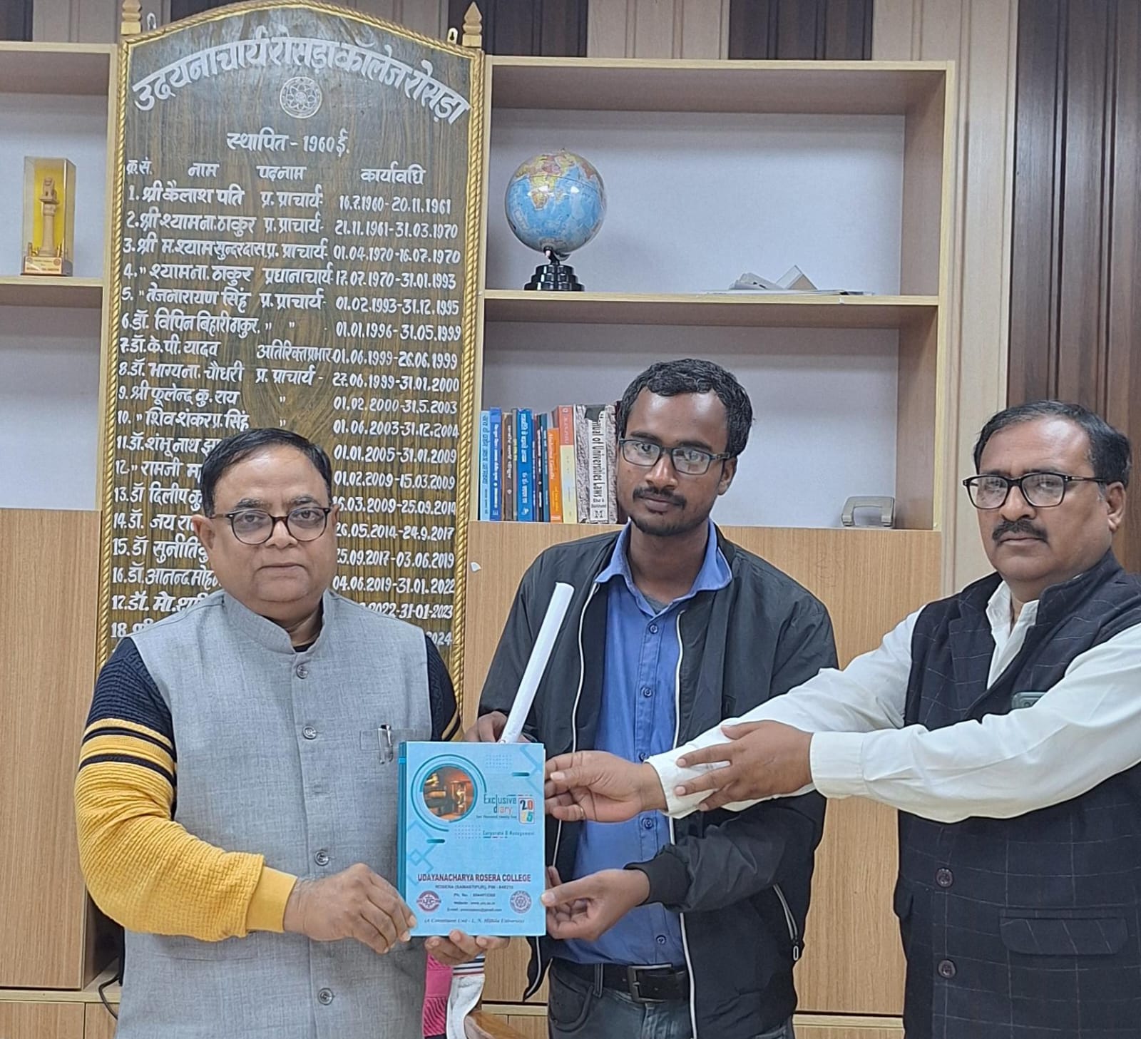 ललित नारायण मिथिला विश्वविद्यालय, दरभंगा के राजनीति विज्ञान विभाग के शोधार्थी रूपेश कुमार यादव ने सोमवार को यू.आर. कॉलेज, रोसड़ा के प्रभारी प्रधानाचार्य डा घनश्याम राय से शिष्टाचार मुलाकात की। इस अवसर पर रूपेश ने कॉलेज परिसर का भ्रमण किया और विश्वविद्यालय जीवन तथा शोध कार्यों को लेकर अपने विचार साझा किए।