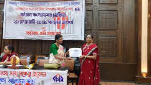 जे टी न्यूज, कोलकाता: मातृभाषा दिवस के अवसर पर कोलकाता विश्वविद्यालय में आयोजित सर्व भारतीय बंगला भाषा मंच के समागम में 100 कवि कवयित्री का निवेदन द्वारा डॉ उर्मिला साव कामना को प्रमाणपत्र देकर सम्मानित किया गया। कोलकाता विश्वविद्यालय में। आन्तरिक मातृभाषा दिवस के उपलक्ष में।ज्ञात हो कि कई वर्षों से यह समागम चल रहा है।इस बार यह समागम कोलकाता विश्वविद्यालय के दरभंगा हाल में 21 फरवरी को किया गया।।साथ में इस मंच के सम्पादक सपन दास,नितिन विश्वास सहित और भी कई गणमान्य भी उपस्थित थे।