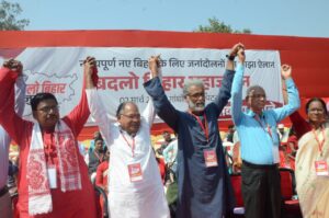 2. 1857 के पहले स्वतंत्रता संग्राम से लेकर रजवार विद्रोह, जमींदारी राज के खिलाफ जुझारू किसान आंदोलन, त्रिवेणी संघ आंदोलन, समाजवादी और कम्युनिस्ट आंदोलनों की इस धरती से बदलाव की जो आवाज उठी है, वह पूरे देश को एक नई दिशा देगी। जब-जब देश में संकट आया है, बिहार संघर्ष के अग्रिम मोर्चे पर खड़ा रहा है। यह महाजुटान फासीवादी भाजपा द्वारा बिहार को पीछे धकेलने, बिहार की सत्ता हड़पने और यूपी की तरह बिहार को सांप्रदायिक हिंसा की आग में झोंकने की हर साजिश का मुंहतोड़ जवाब देने का आह्वान करता है। हम उसे नाकाम बनाते हुए बिहार की ऐतिहासिक विरासत पर खड़े होकर बिहार को आगे बढ़ाने का संकल्प लेते हैं।