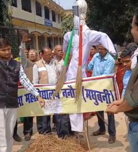 जे टी न्यूज़, ननौर/मधुबनी : वित्तरहित शिक्षक एवं कर्मी ने 11मार्च 2025 को विधान परिषद में विधान पार्षद डॉ नवल किशोर यादव के वित रहित कर्मियों के अद्यतन अनुदान एवं वेतनमान एवं पिछले शीतकालीन सत्र में गठित कमेटी का निर्णय जैसे सवालों के जवाब में पूछने पर मंत्री द्वारा दिए गए। अमर्यादित बयान से व्यथित व्यथित होकर ननौर कॉलेज के तमाम वित्त रहित कर्मियों ने मंत्री का पुतला दहन लूटन झा महाविद्यालय ननौर के मुख्य द्वार पर किया। सनद रहे यह बयान शिक्षा मंत्री को देना था लेकिन सरकार के दलाल ने शिक्षा मंत्री के नहीं रहते हुए भी शिक्षकों के विरोध में जो बयान दिया वह बर्दाश्त के लायक नहीं है। जबकि उन्हें माननीय विधान पार्षदों ने बार-बार बैठने का अनुरोध किया परंतु वे और मर्यादित तरीके से बीच-बीच में अपना बयान देते रहे। ज्ञात हो कि सरकार के सभी निर्णय विधान परिषद एवं विधान मंडलों से कानून बनाकर ही आया है। चाहे वह महाविद्यालय सेवा आयोग से हो या विश्वविद्यालय से अतः हम लोगों ने निर्णय लिया है कि हम सभी वितरहित शिक्षक कर्मी वोट के द्वारा अगले मतदान में बिहार सरकार को जवाब देंगे। पुतला दहन कार्यक्रम में प्रोफेसर रविन्द्र नाथ झा प्रोफेसर मनोज झा प्रोफेसर कुमर झा प्रोफेसर देवेंद्र झा प्रोफेसर तरुण कुमार झा प्रोफेसर कमर हुसैन प्रोफेसर विजयनन्द झा प्रोफेसर बालंद झा प्रोफेसर शिशुबोध प्रोफेसर योगेंद्र राम प्रोफेसर बृज किशोर यादव प्रोफेसर मुरलीधर सेन प्रोफेसर जे सी ठाकुर प्रोफेसर अब्बास प्रोफेसर रिजवान रामचंद्र प्रसाद गोविंद ठाकुर देवीलाल सभी शिक्षक एवं शिक्षकेतर कर्मचारी उपस्थित थे