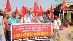 जे टी न्यूज, ताजपुर/समस्तीपुर : ताजपुर प्रखंड परिसर में फेंका गया थूक को पहले झारू से साफ करवाने फिर पानी से धुलवाने फिर पीड़ित से सार्वजनिक रूप से माफी मंगवाने के बाबजूद स्थानीय बंगरा निवासी नाबालिग चितरंजन कुशवाहा को जेल भेजने के उद्देश्य से बीडीओ द्वारा थाना के हवाले किये जाने की मानवता को शर्मशार करने वाली घटना के खिलाफ मंगलवार को भाकपा माले के कार्यकर्ताओं ने मोतीपुर खैनी गोदाम से विरोध मार्च निकाला।