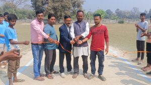 जे टी न्यूज, विभूतिपुर: आज शहीद देवेंद्र नगर कॉलोनी स्थित स्टेडियम में अंडर 18 वर्ग के खिलाड़ियों के बीच क्रिकेट मैच का उद्घाटन हुआ। उद्घाटन पश्चात खेल का प्रारंभ राष्ट्रीय गीत जन गण मन….से हुआ। उद्घाटन का कार्यक्रम पूर्व विधायक प्रत्याशी अमरजीत ठाकुर , दीपू मिश्रा, समाजसेवी सह पत्रकार विनय कुमार रॉय, व्यवसाई रंजन आदि के द्वारा संयुक्त रूप से किया गया।