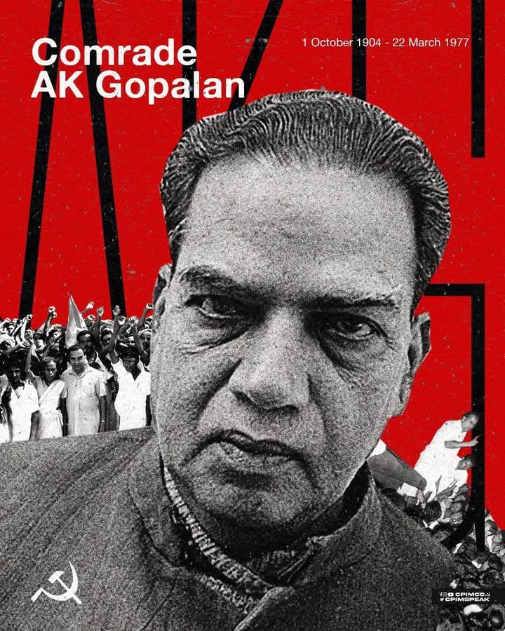 एके गोपालन एक कट्टर राष्ट्रवादी थे, जो पहले कांग्रेस और बाद में भारतीय कम्युनिस्ट पार्टी में शामिल हुए, और 1952 में पहली लोकसभा के लिए चुने गए इसके 16 सदस्यों में से एक बने। बाद में, वे भारतीय कम्युनिस्ट पार्टी (मार्क्सवादी) के संस्थापक सदस्यों में से एक बने।