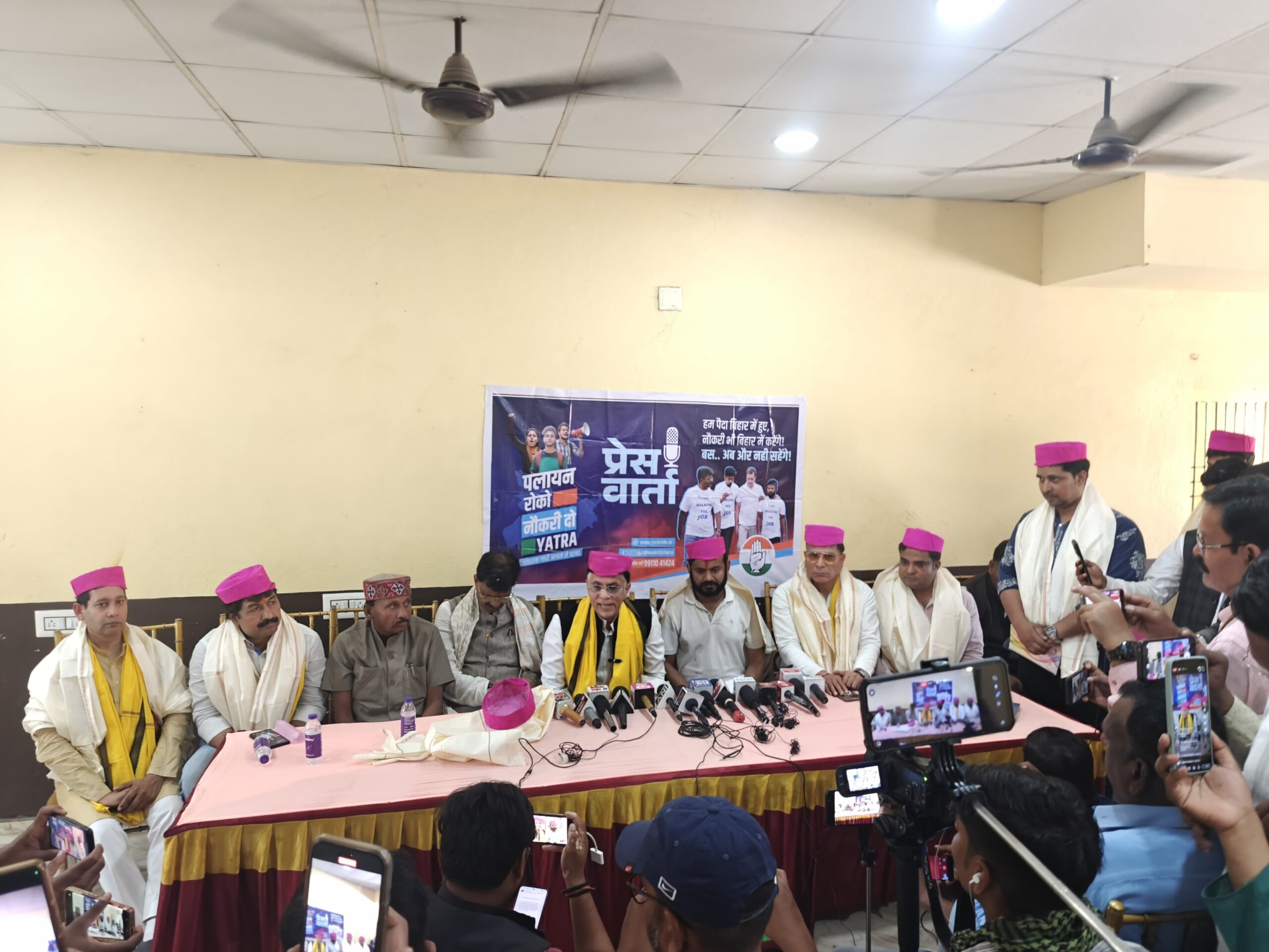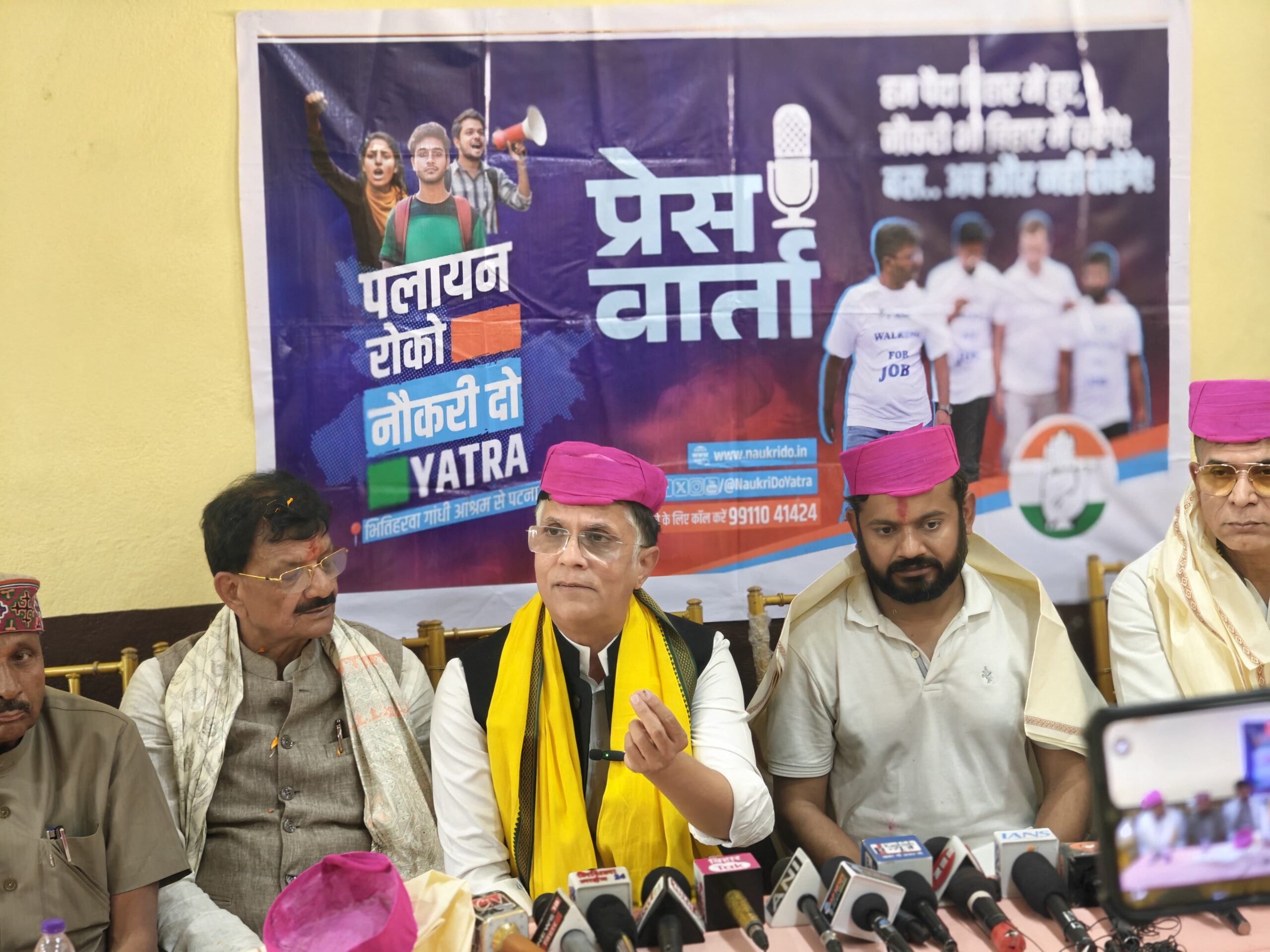 दरभंगा पहुंची पलायन रोको नौकरी दो यात्रा के दौरान बाघमोड़, बेला के निजी सभागार में आयोजित संवाददाता सम्मेलन को संबोधित करते हुए एआईसीसी मीडिया एवं पब्लिसिटी विभाग के चेयरमैन पवन खेड़ा ने कहा कि भाजपा जदयू सरकार में बिहार के युवाओं को बेरोज़गारी, पेपर लीक और पलायन जैसे मुद्दों को लेकर आक्रोश है, वें निराश हैं और इन्हीं सब वाजिब और युवाओं के हित के मुद्दों को लेकर कांग्रेस पार्टी इस यात्रा को संचालित कर रही है, इस यात्रा से बिहार के प्रत्येक युवा की आवाज़ बुलंद हो रही है। उन्होंने आगे कहा कि कन्हैया कुमार पलायन रोको नौकरी दो यात्रा के माध्यम से लगातार विभिन्न जिलों में जो मुद्दे उठा रहे हैं, उसे बाकी राजनीतिक दलों को आज नहीं तो कल उठाना ही पड़ेगा। आज सत्तारूढ़ दल हमारा ध्यान बांटना चाहता है, ताकि लोग असली मुद्दों पर बात न करें और वो अपनी नाकामी छिपा सकें। लेकिन हमने लगातार स्थानीय मुद्दों से लेकर राज्य के युवाओं और छात्रों के मुद्दों को इस यात्रा में उठाया और उसका व्यापक समर्थन हमें मिल रहा है।