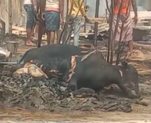 पूसा प्रखंड के चंदौली में आग लगने से जलकर कई मवेशी की मौत